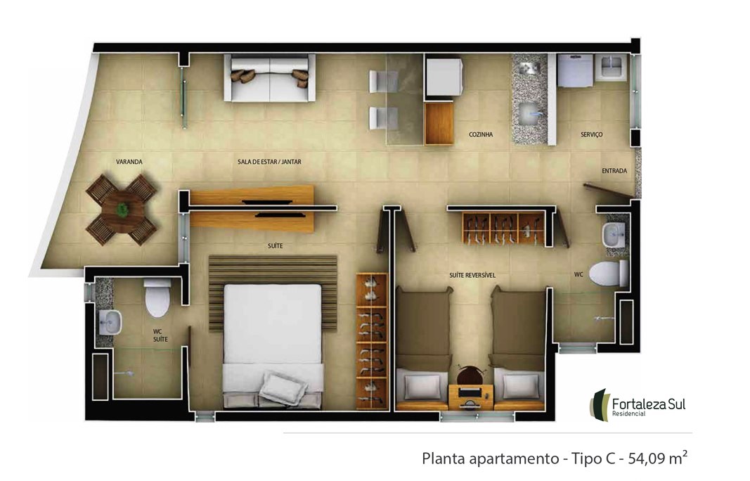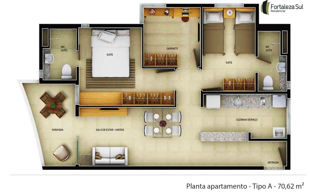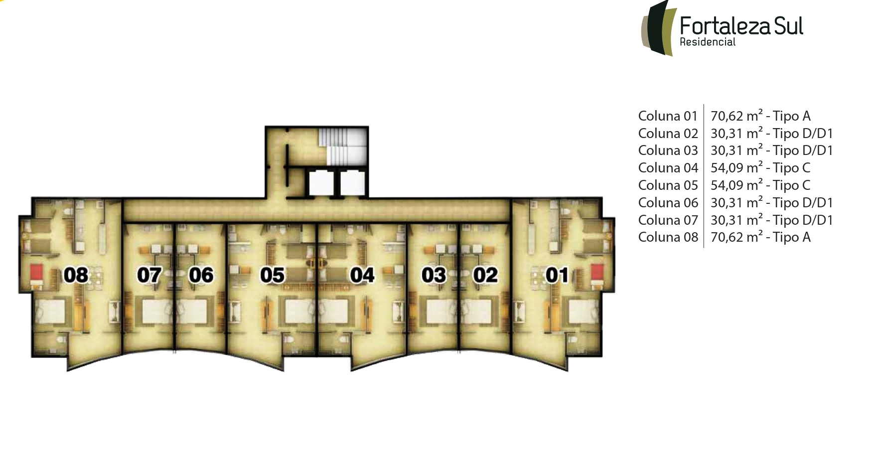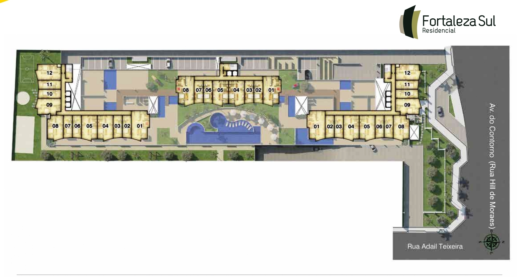 O Residencial Fortaleza Sul foi criado para beneficiar a comodidade e a praticidade em um ambiente privado de alto padrão em composições de apartamentos compactos.